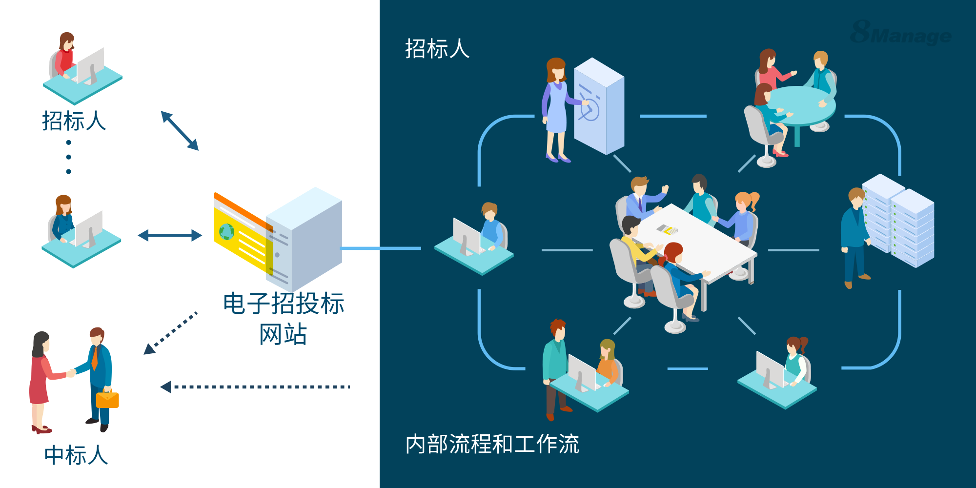 8Manage电子招标解决方案所带来的透明性和可访问性,使你能够在伙伴关系层面上与供应商合作,以期获得长期的共享利益。点击申请产品演示即可体验其好处。