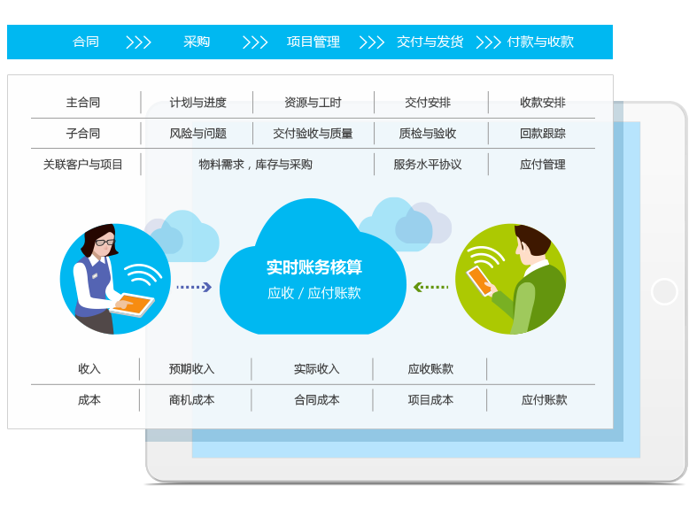 大多数现代项目管理软件,例如8Manage PM项目管理软件,可以支持各种收入确认方式。该软件能帮助企业全面有效地管理项目层及活动层收入和成本的预算,并实时跟踪和汇总实际的收入和成本。包括项目中的销售订单与合同,项目工时成本,各项项目费用,采购订单,开票与回款等。